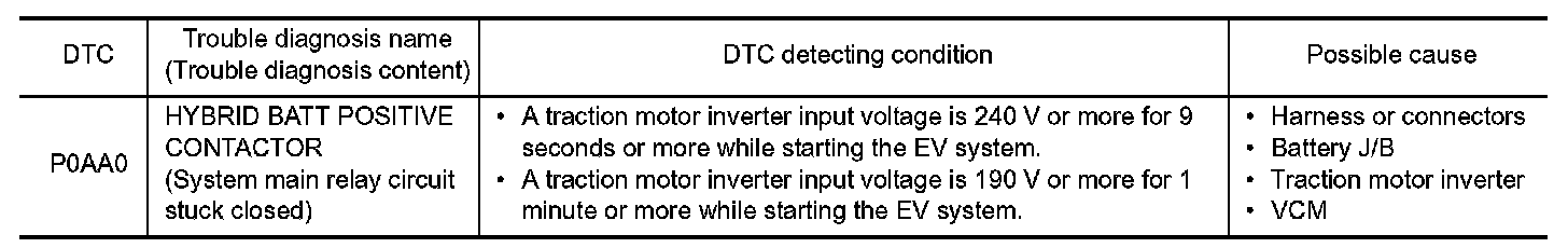 If DTC P0AA0 is displayed with DTC P0AA2, P0AA5, P31D4, P31DB, P31DC, or P31DD, perform diagnosis for DTC P0AA2, P0AA5, P31D4, P31DB, P31DC, or P31DD.