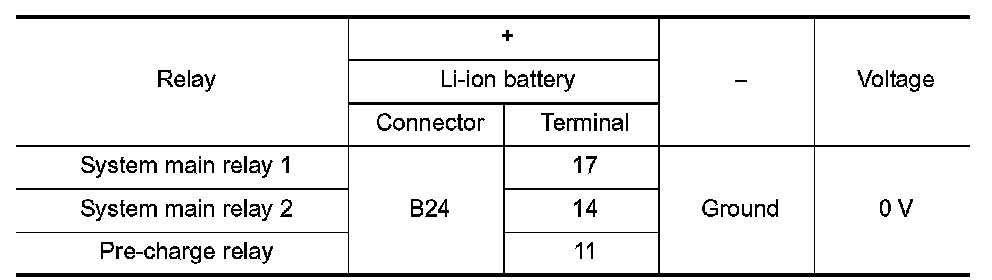 3.Check the voltage between Li-ion battery harness connector and ground.