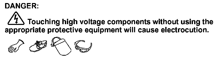 Touching high voltage components without using the appropriate protective equipment will cause electrocution.