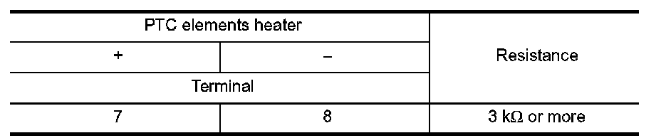 YES- Replace PTC elements heater. Refer to "Removal and Installation" Removal And Installation. And then, GO TO 10.