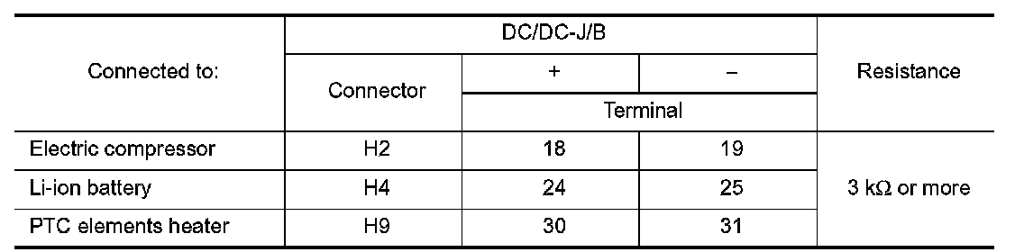 2.Check the short circuit between DC/DC junction box harness connector terminals.