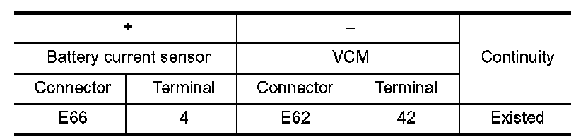 1.Check the continuity between battery current sensor harness connector and VCM harness connector.