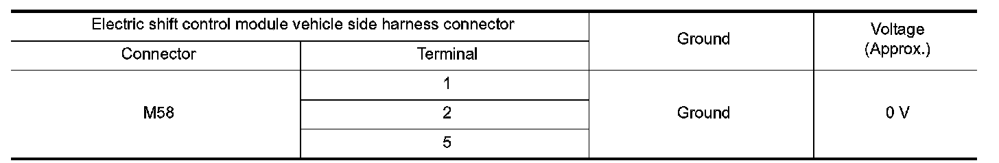 4.Check the voltage electric shift control module vehicle side harness connector terminals and ground.