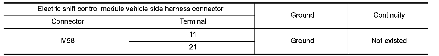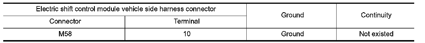4.Check the continuity between electric shift control module vehicle side harness connector terminals and ground.