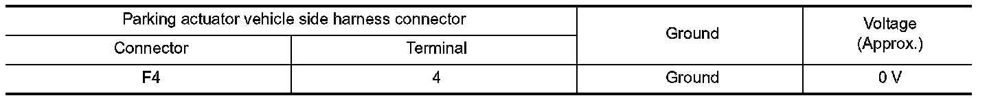 2.Check the voltage between parking actuator vehicle side harness connector terminal and ground.