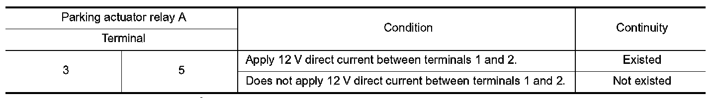 3.Check the continuity between parking actuator relay A terminals 3 and 5.