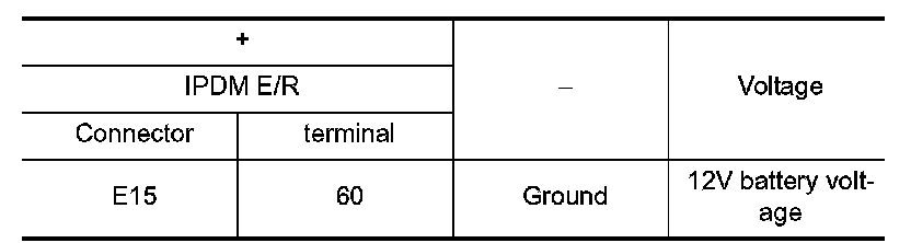 2.Check the voltage between IPDM E/R harness connector and ground.