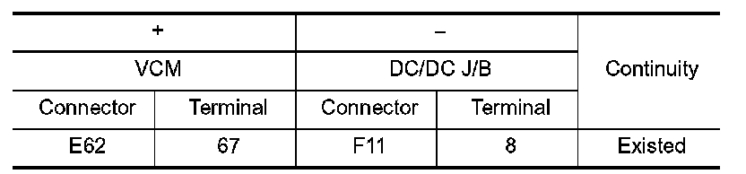 2.Check the continuity between VCM harness connector and DC/DC junction box harness connector.
