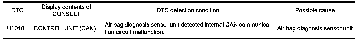 When DTC "U1010" is detected, replace Air bag diagnosis sensor unit.