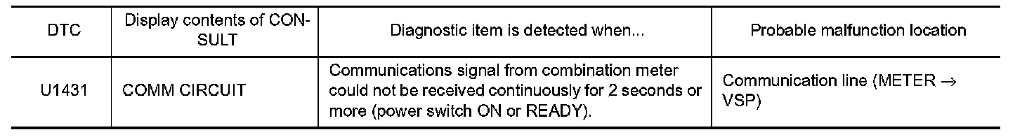 The communications line (METER VSP) sends signals needed for VSP system control from the combination meter.