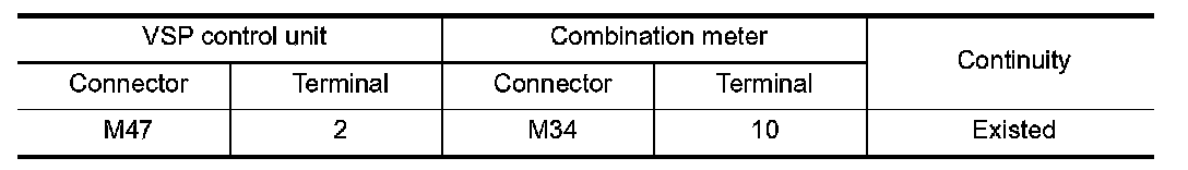 3.Check continuity between VSP control unit harness connector and combination meter harness connector.