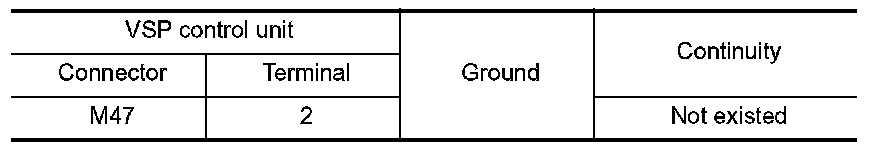 4.Check continuity between VSP control unit harness connector and ground.