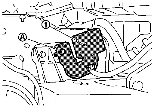 2.Remove the Intelligent Key warning buzzer mounting bolt (A), and then remove the Intelligent Key warning buzzer (1).