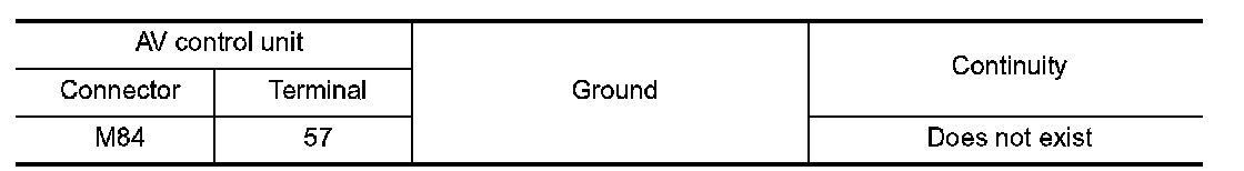 4.Check for continuity between the AV control unit harness connector and ground.