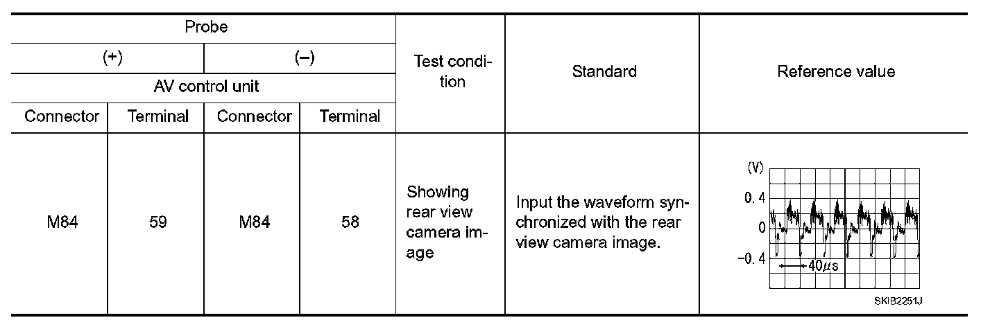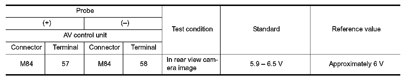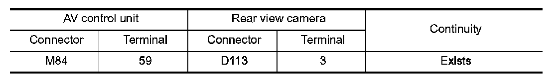 3.Check for continuity between the AV control unit harness connector and rear view camera harness connector.