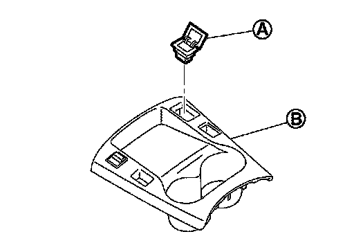 2.Press the tab and remove the AUX jack (A) in the direction of the arrow from the rear of the instrument lower center cover (B).