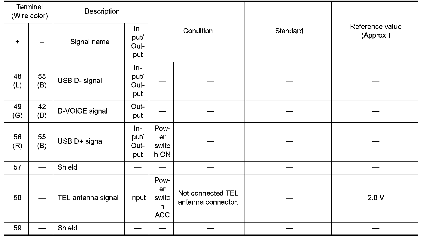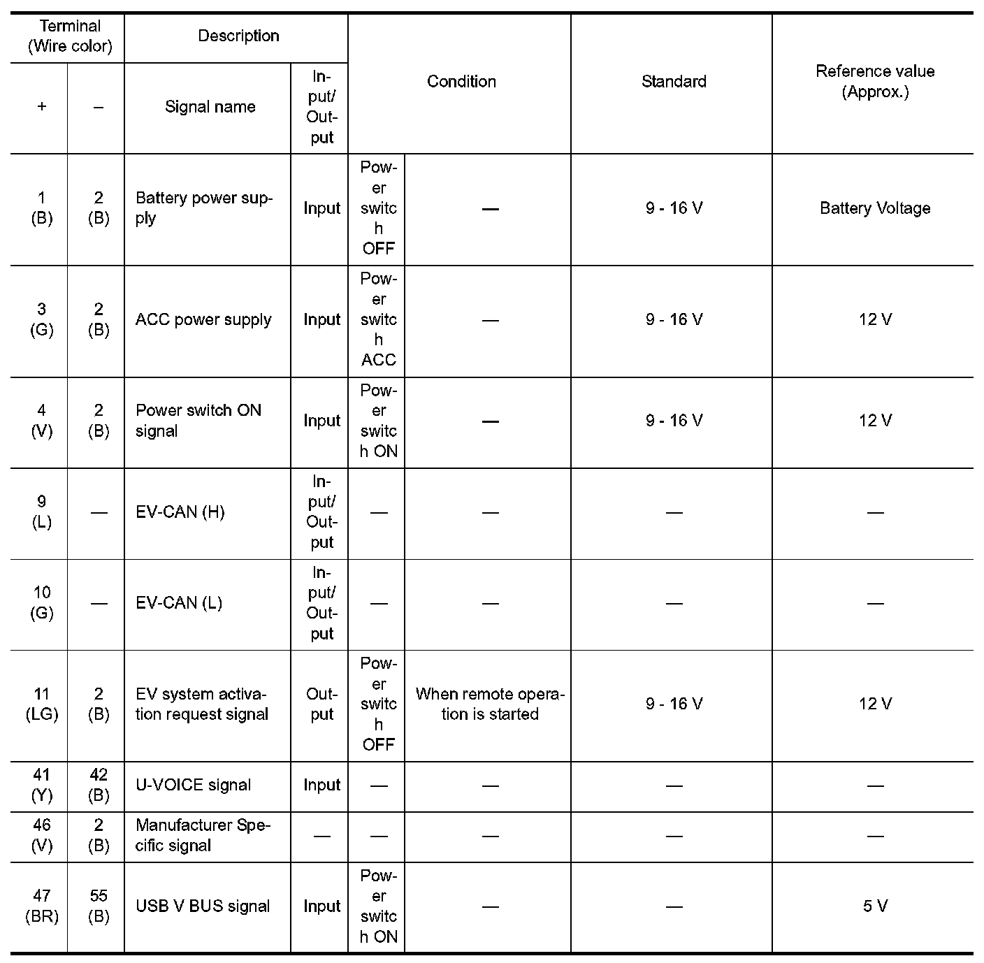 Pinout Values and Diagnostic Parameters