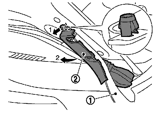 2.Remove hood hinge cover (2) from hood hinge (1).