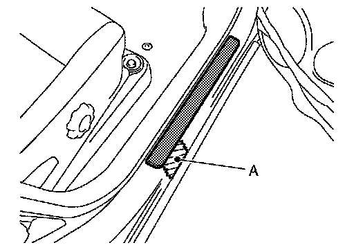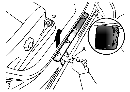 2.Disengage front kicking plate outer fixing pawls with a remover tool (A), and then remove front kicking plate outer.