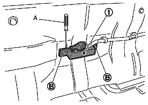 2.Remove the inside key antenna (luggage room) (1) using a remover tool (A).