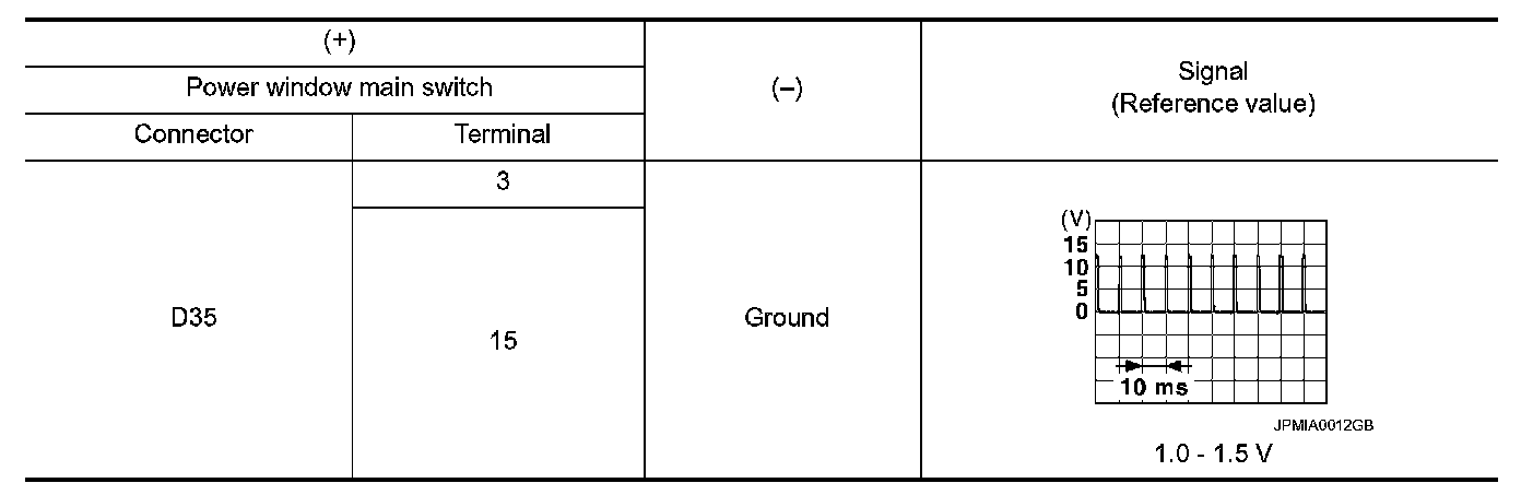 3.Check signal between power window main switch harness connector and ground using oscilloscope.