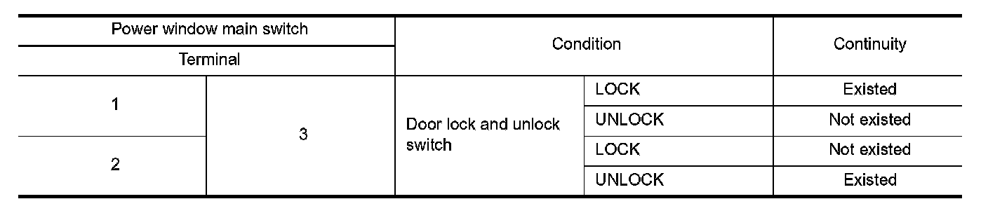 3.Check continuity between power window main switch terminals.