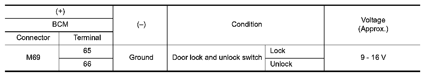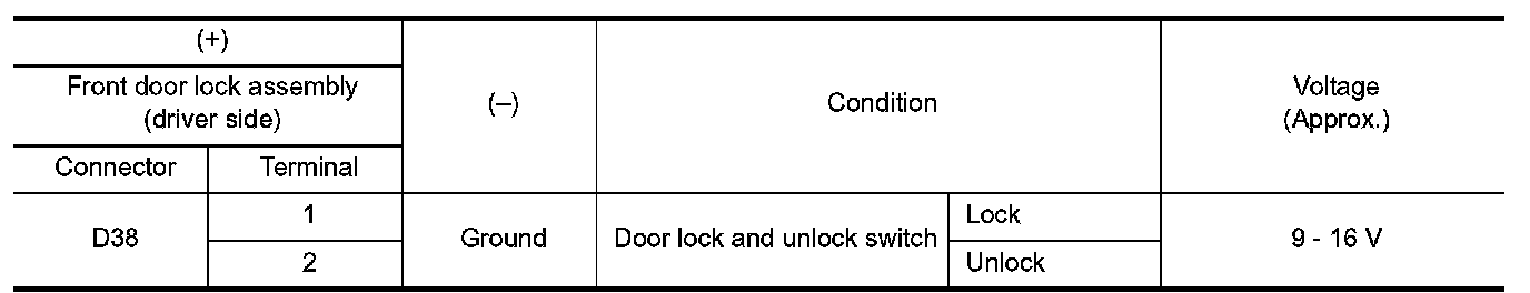 3.Check voltage between front door lock assembly (driver side) harness connector and ground.