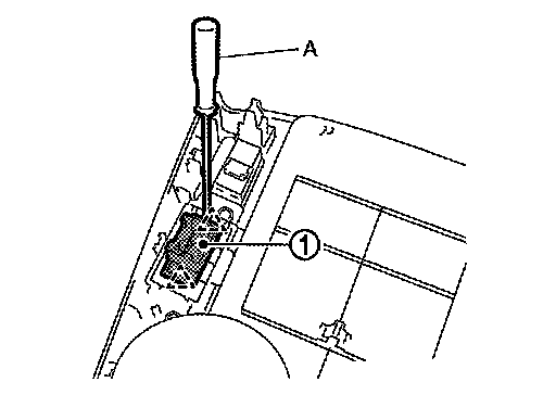 2.Disengage the heated seat switch (1) fixing pawl using remover tool, and remove heated seat switch from console finisher assembly.