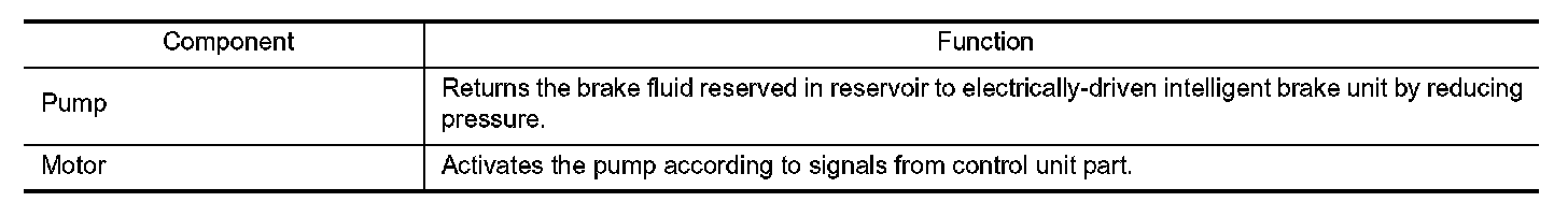 brake caliper is supplied to the reservoir through the ABS OUT valve. This fluid pressure decreases when sent to the electrically-driven intelligent brake unit by the pump.