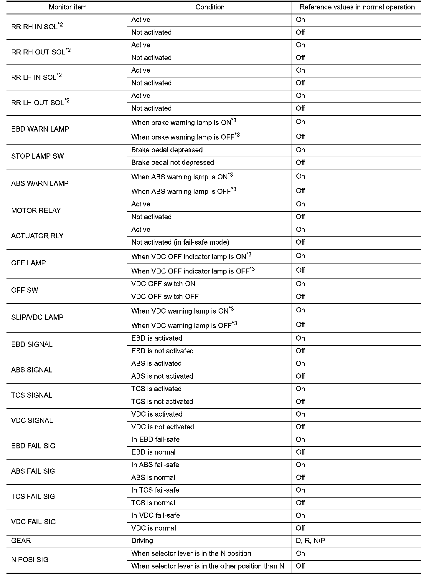 *3: Refer to "System Description" System Description for ON/OFF conditions of each warning lamp and indicator lamp.