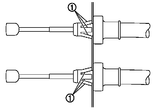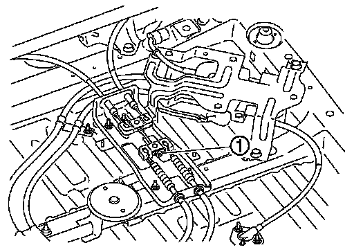 b.Pull rear cable (2) downward to remove rear cable from equalizer.