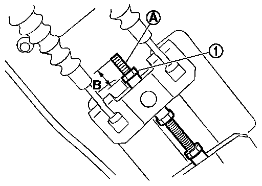 - Tighten the adjust nut (1) so that the bolt (A) is within dimension B.