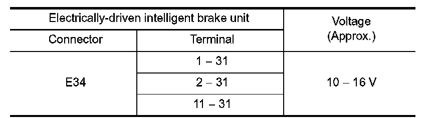 8.Check the voltage between the electrically-driven intelligent brake unit harness connector terminals.