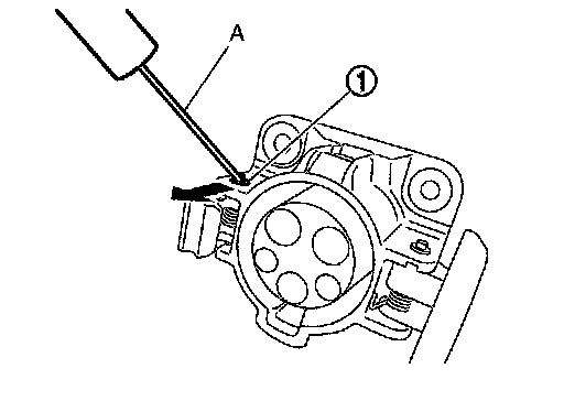 1.Use a suitable tool (A) to remove the clip (1) that is attached to the pin.