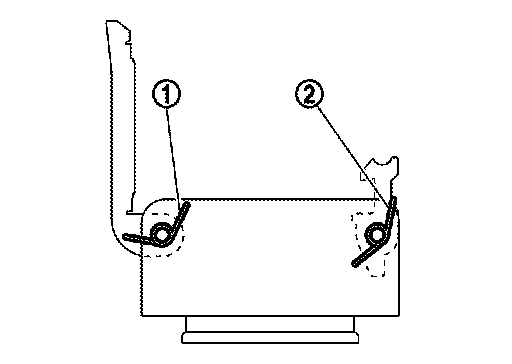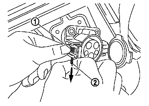 2.Press while removing pin (2) to ensure that spring (1) does not jump out, then remove lever.