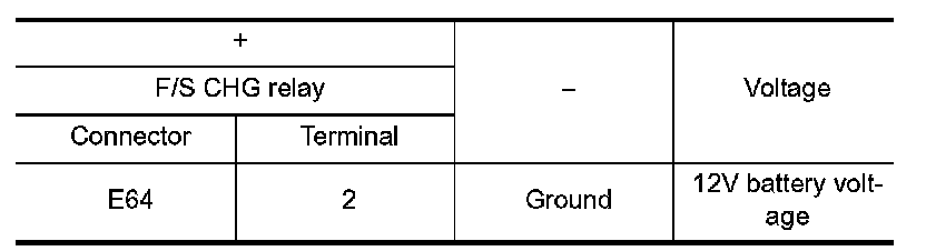 4.Check the voltage between F/S CHG relay harness connector and ground.