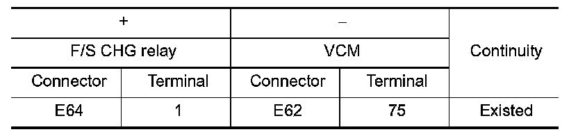 3.Check the continuity between F/S CHG relay terminals under the following conditions.