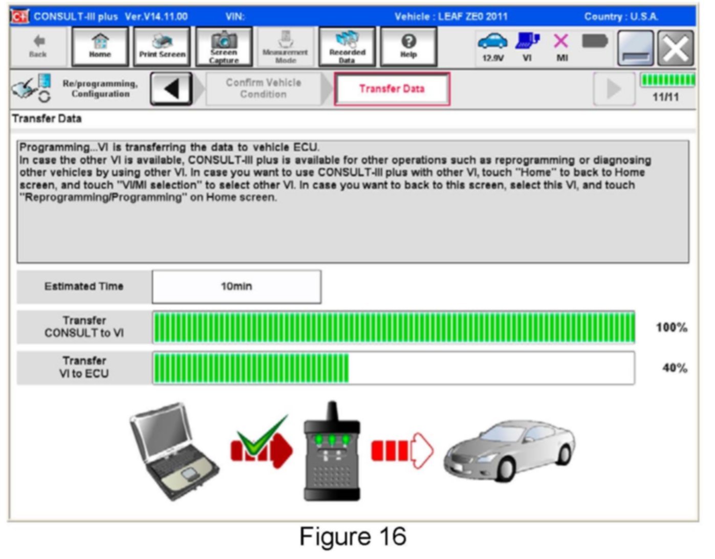 For reprogramming to continue, vehicle 12V battery voltage must stay within 12 volts and 15.5 volts. Make sure the voltage level is sufficient.