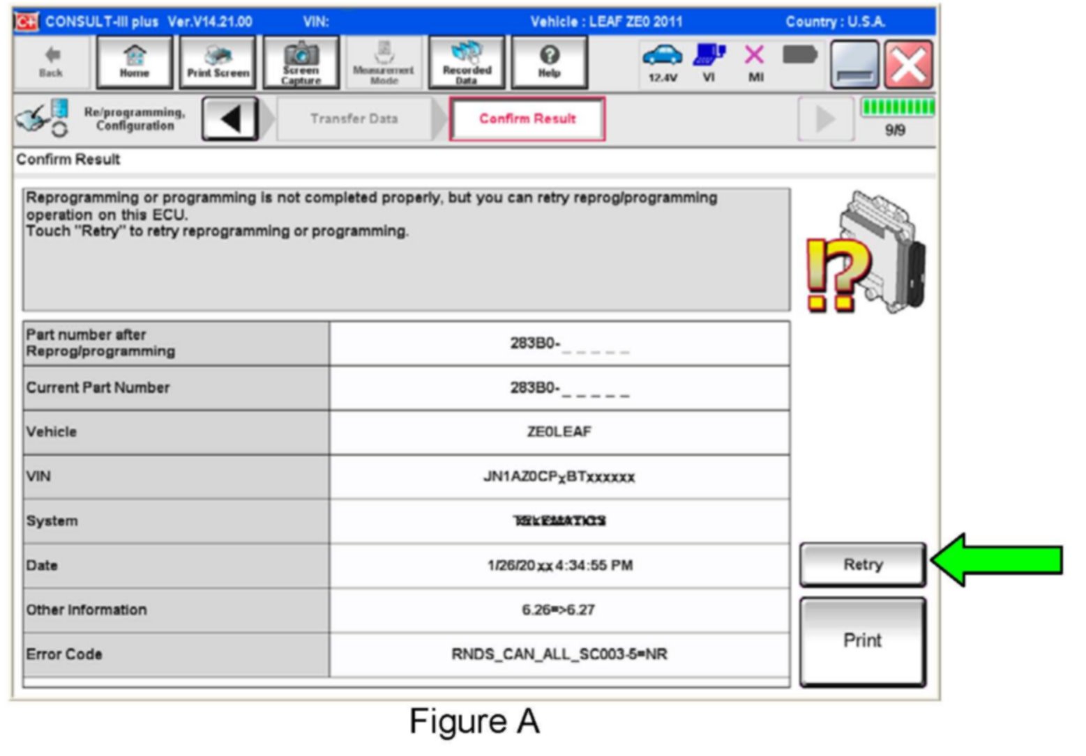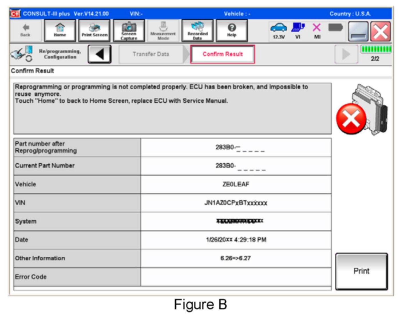 OR: If reprogramming does not complete and the X displays as shown in Figure B: