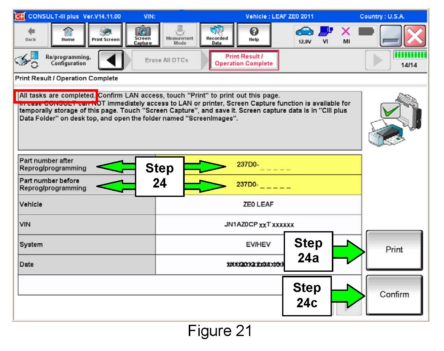 Before and after part numbers on your print-out may be switched compared to your CONSULT PC screen. This is ok.