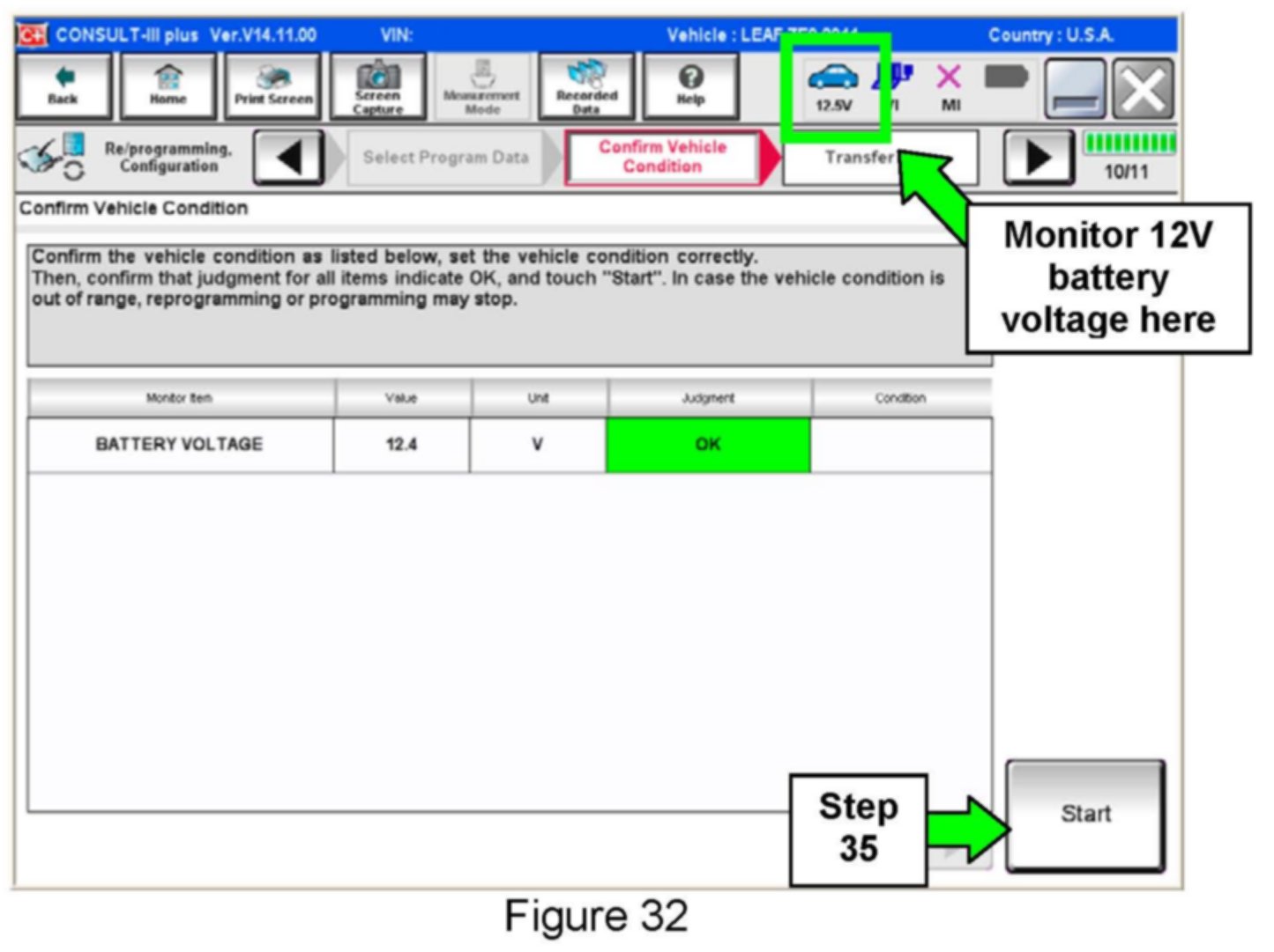If a Mobile Technician performs the reprogram, make sure a fully charged 12 V battery (with jumper cables) or portable battery charger is used.