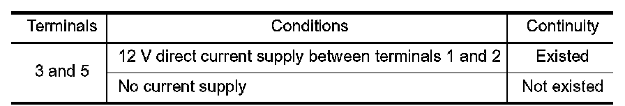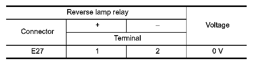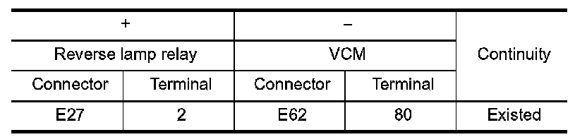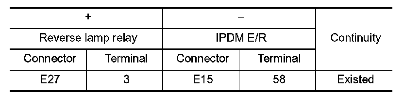 3.Check the continuity between reverse lamp relay terminals under the following conditions.