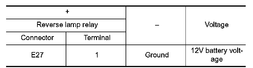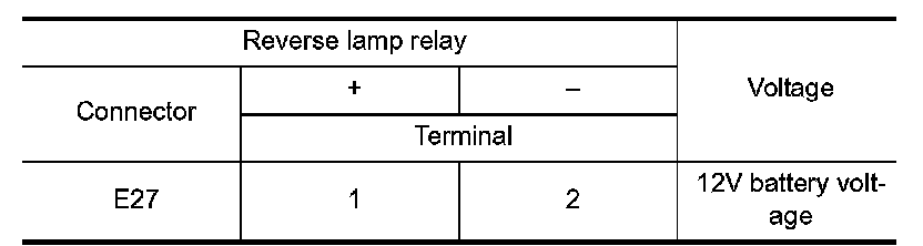 7.Check the voltage between reverse lamp relay harness connector terminals.