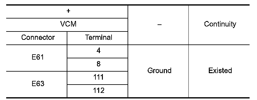 Check the continuity between VCM harness connector and ground.