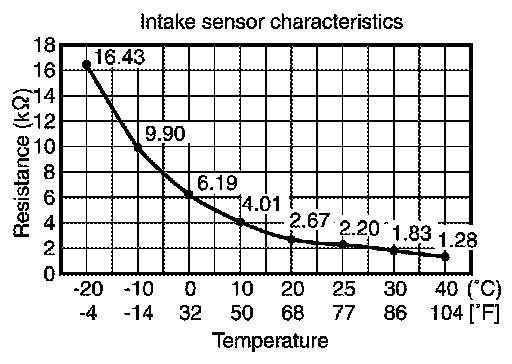 Intake sensor measures evaporator fin temperature. This sensor uses thermistor that decreases electrical resistance as temperature increases.