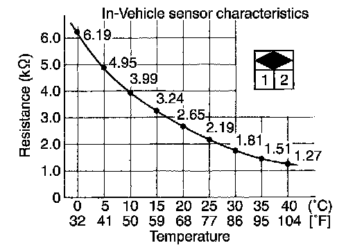 In-vehicle sensor measures temperature of interior air that is sucked into the aspirator. This sensor uses thermistor that decreases electrical resistance as temperature increases.