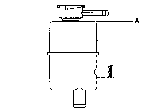 6.When the degas tank level is low, open the degas tank cap and refill the tank with water to line (A).