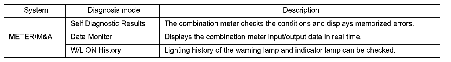 DIAGNOSIS SYSTEM (COMBINATION METER)