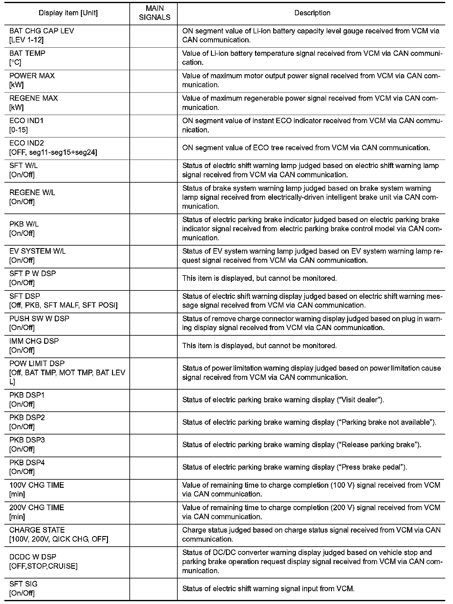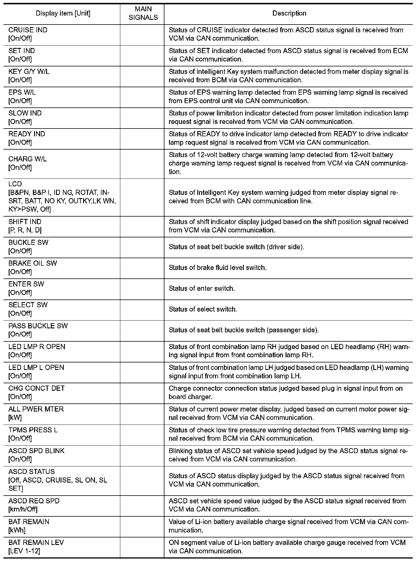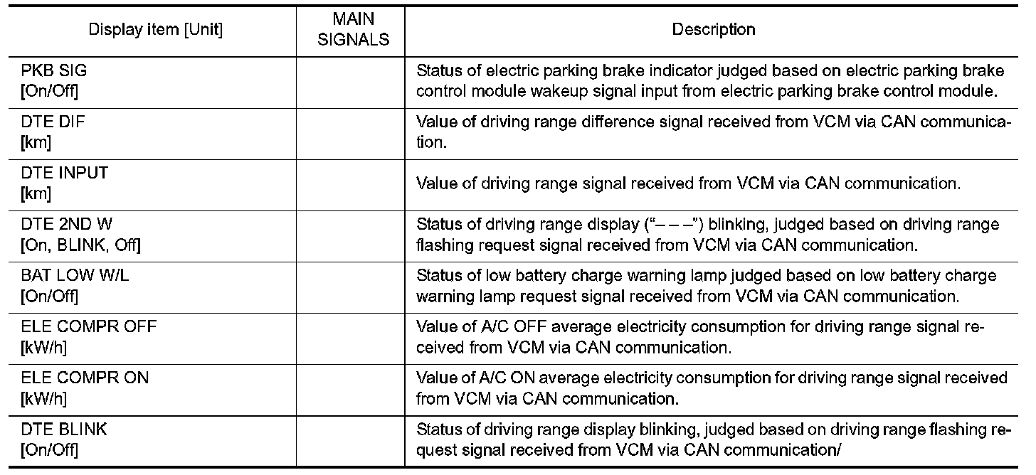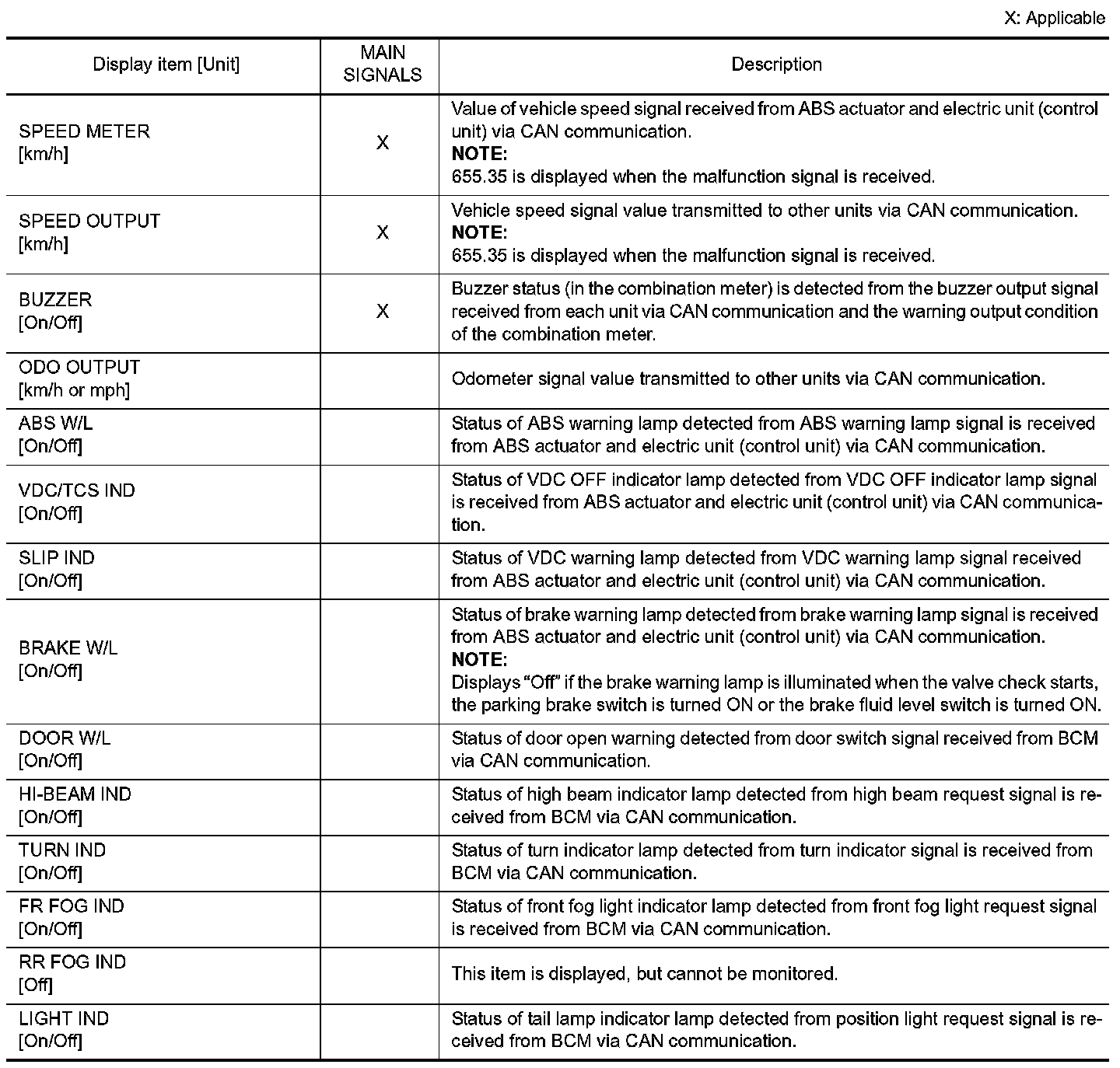 In items displayed on the CONSULT screen, only those listed in the above table are used.