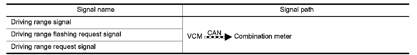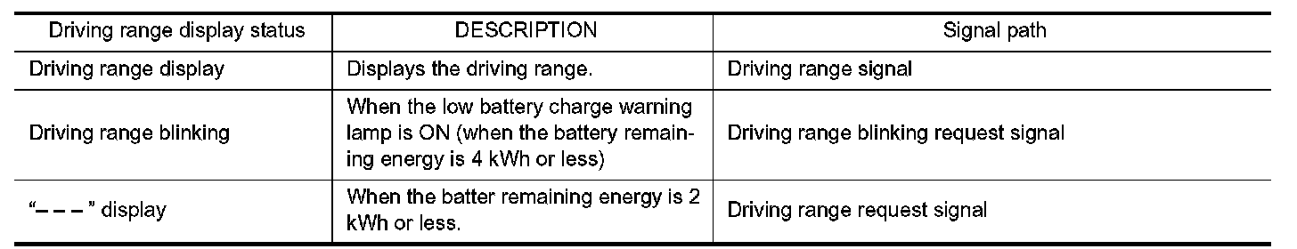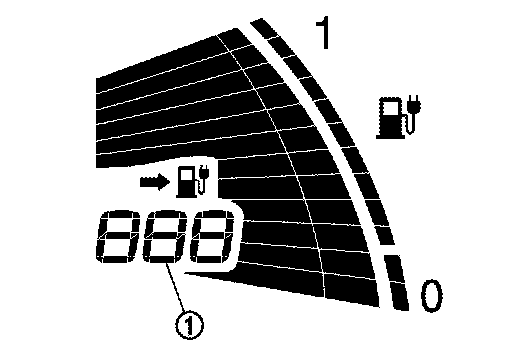 - Based on the signals received via CAN communication from VCM, the combination meter displays the driving range on the driving range display (1).